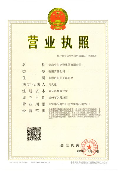 • 【喜訊】湖北中陽建設集團榮獲2018—2019年度省市兩級“守合同重信用企業”稱號